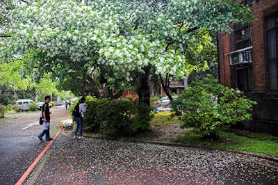 今日不只有春天的氣息,其實還帶些夏日的風味,廣場的溫度計顯示著三十一度。下午兩點,開始登山,原本以為將步入樹林裡躲些陽光。但走一小段木棧道後,就只見兩公里的柏油路。