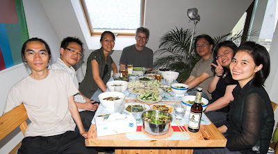 「法國人生活是為了吃美食,德國人吃飯是為了喝啤酒。」在 weekdays 中,每天中午 Martin 都會同實驗室的學生一同吃飯,但每次往餐館的路線都是相同的直達學生食堂,食堂每天中午會有三道餐點,每道餐點約 3 Euro 左右。而這一周 Martin 正好外出開會,這幾天中午就可輪流品嘗當地的餐館,這幾天吃下來的結論是味道真得太鹹。吃在德國的最特別的一點就是麵包是德國人的主食,到處都可見麵包店,餐餐吃麵包就如同台灣的餐餐吃米飯一樣平常吧。